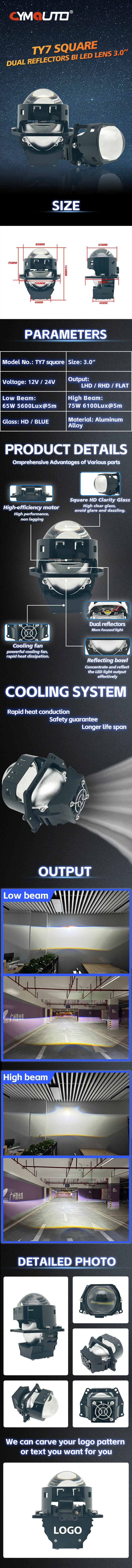 TY7 3inch Square Reflectors Bixenon Projector Lens 65W/75W High Power