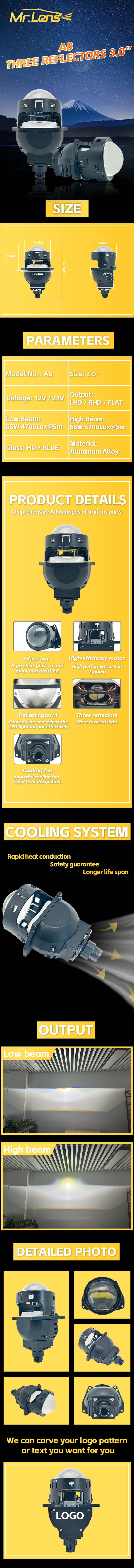 CYMAUTO A8 TRI REFLECTORS SUPER POWERFUL 3INCH BI-LED LENS