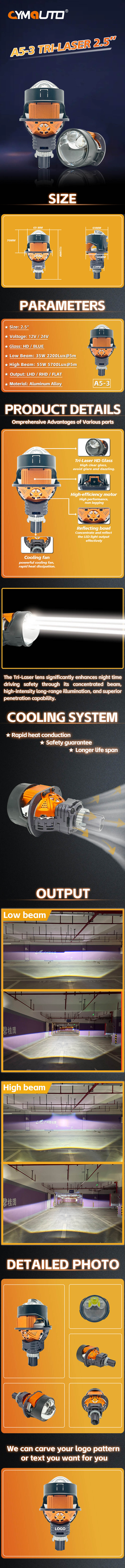 ✔ Tri - laser illumination advantage: Low beam 35W (2200Lux@5m), high beam 55W (5700Lux@5m), bringing clear and far - reaching night vision to enhance driving safety.